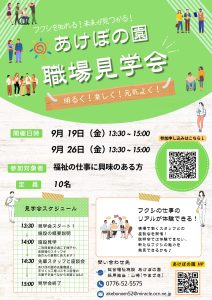 さて、9月あけぼの園の職場見学会開催のご案内です!