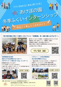 この度、291jobsが主催する冬季ふくいインターンシップにあけぼの園も参加しています(^^)/